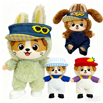 Accesorios bonitos para muñecos de peluche de 17cm al por mayor, juguete de dibujos animados OEM personalizable con ropa lujosa para juguetes y regalos
